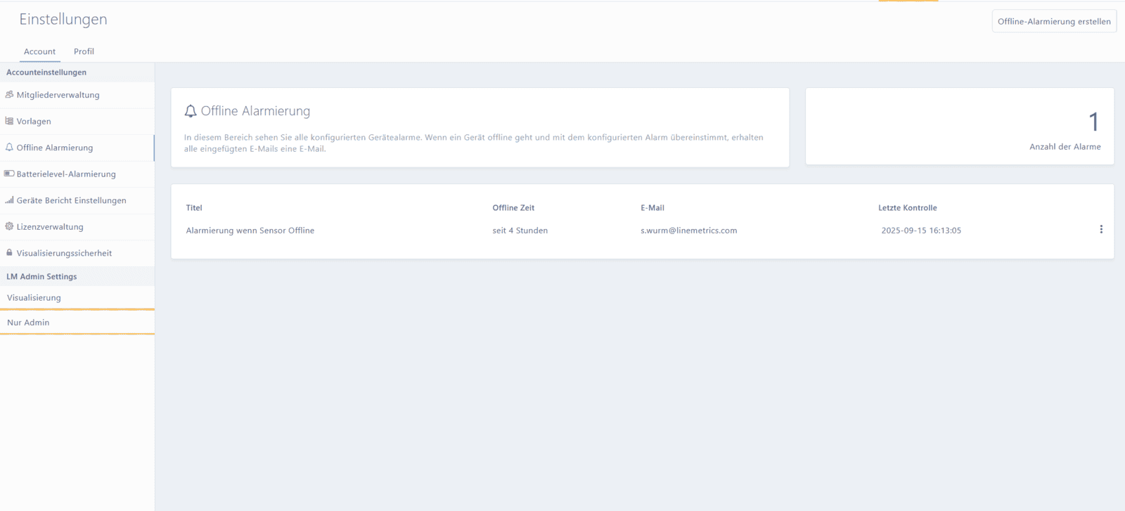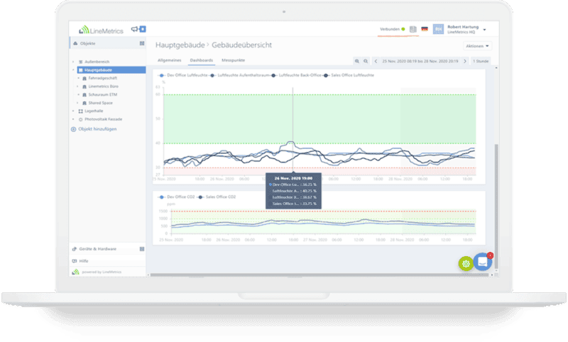 Die LineMetrics Cloud macht Ihre Temperaturüberwachung übersichtlich und einfach bedienbar. Sehen Sie in Dashboards live alle Messwerte, Trends und Alarmierungen. Mit wenigen Klicks können Sie Grenzwerte, Alarmkanäle und Reports an Ihre Anforderungen anpassen. Die gesamte Konfiguration erfolgt intuitiv in der Cloud – ganz ohne komplexe IT-Prozesse.